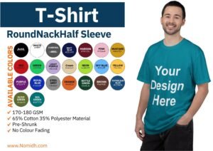 Our Half Sleeve T-Shirts are crafted from 65% cotton 45% Polyester, ensuring softness and durability. Featuring a classic fit and reinforced stitching, these tees are perfect for everyday wear. The fabric is pre-shrunk to maintain its shape after washing and also No Color Fading Guarantee. Our advanced direct-to-Film (DTF) or Screen printing technology ensures your designs come out vibrant and long-lasting.